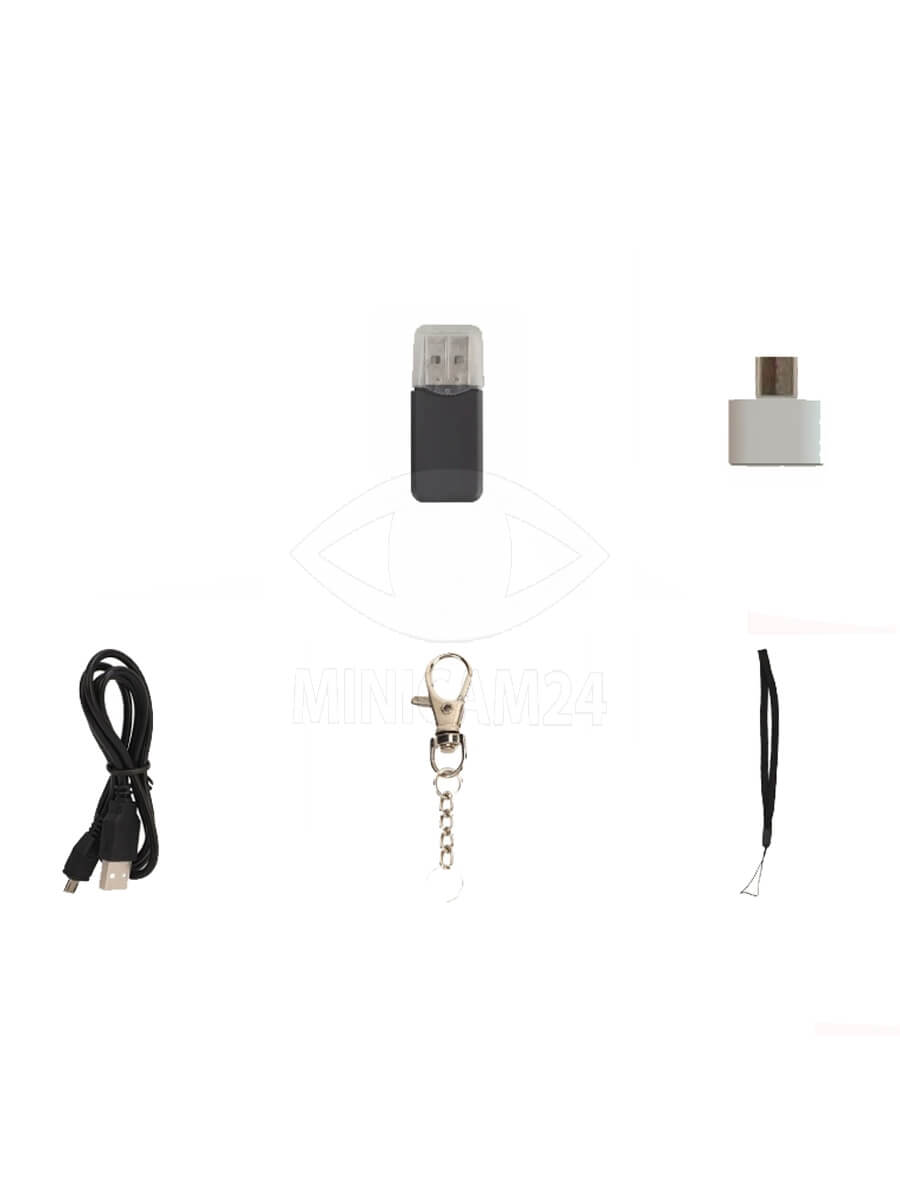 Мини-камера работает от полимерного аккумулятора емкостью 180 мАч, обеспечивая до 100 минут автономной работы. Для зарядки используется стандартный интерфейс DC-5V, что позволяет легко восстановить заряд устройства. Поддержка TF-карт делает процесс хранения и переноса данных быстрым и удобным. Компактность и легкость камеры делают её идеальным аксессуаром для ношения в виде брелока.