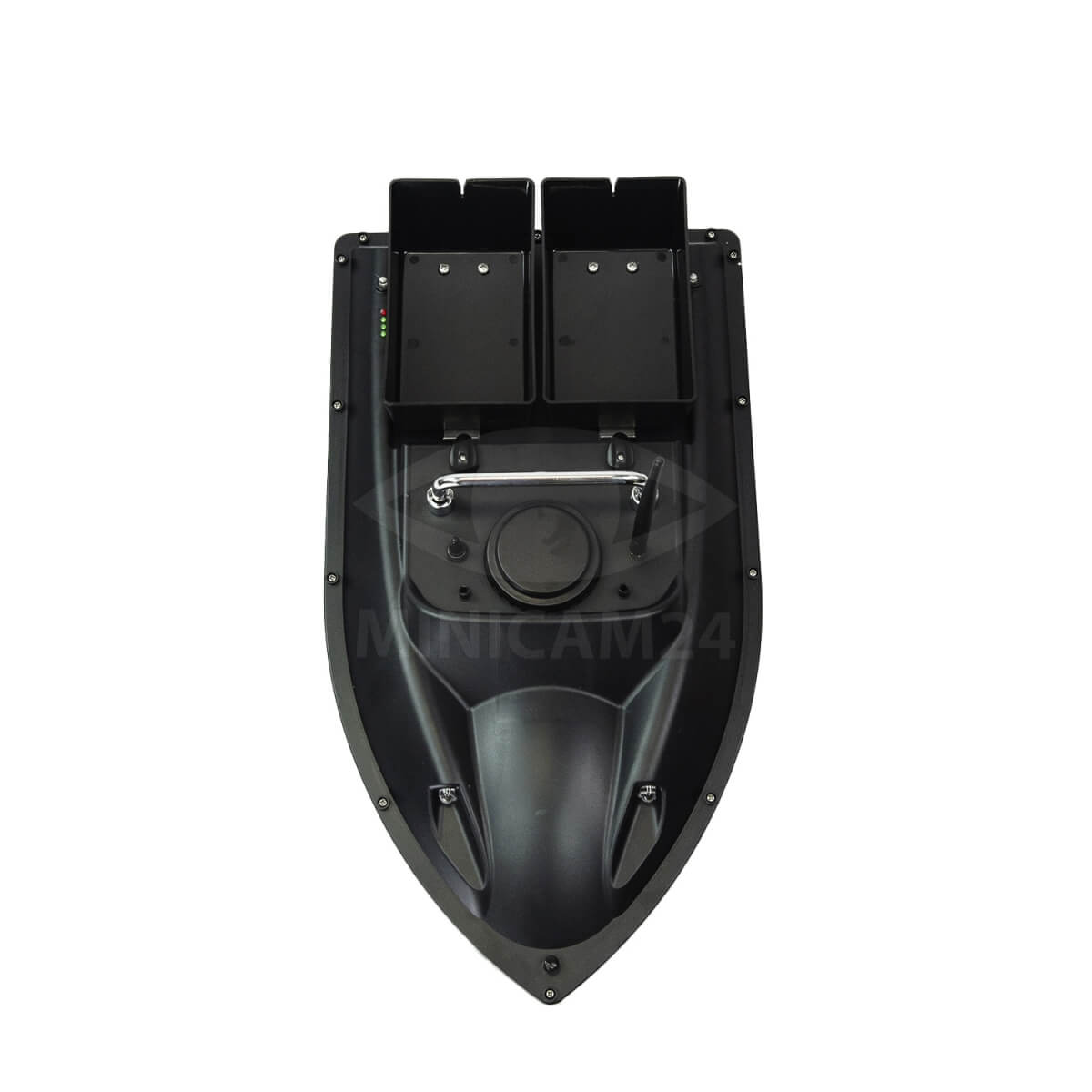 Устройство для прикорма рыбы. Управляется с помощью пульта ДУ на частоте 2.4 ГГц. Предусмотрено два вместительных лотка по 0.5 кг каждый. В букерах есть надрезы для надежной фиксации оснастки. Лодка оснащена двумя винтами, они позволяют развить скорость до 6 км/ч. На борту есть светодиодный фонарь, он облегчает управление корабликом в темное время суток. Центральная плата помещена в специальный резервуар, который защищен от влаги и конденсата.